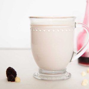This easy white hot chocolate recipe is perfect for chilly winter months, it’s rich creamy, and delicious, and we’ve added a fun twist! The addition of homemade blackberry syrup makes this decadent drink one of a kind and oh-so-yummy!