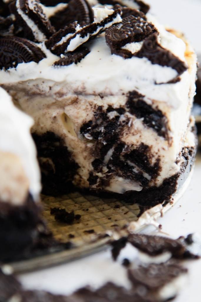 Any leftover cookies & cream cheesecake can be transferred to an airtight container or covered in plastic wrap and stored in the fridge for up to 5 days!