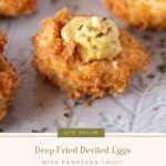 These crispy, deep fried deviled eggs put a new twist on traditional deviled eggs and are sure to be a hit with everyone! Featuring crispy panko breading and a creamy Dijon filling, these deep-fried deviled eggs are perfect for Easter brunch, potlucks, parties, and more!