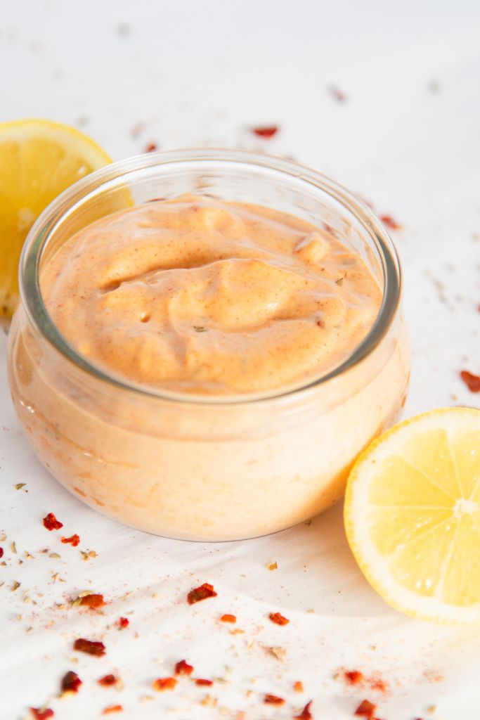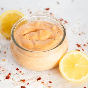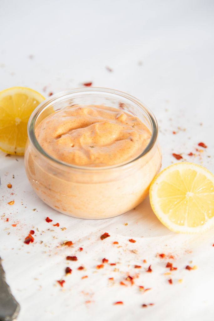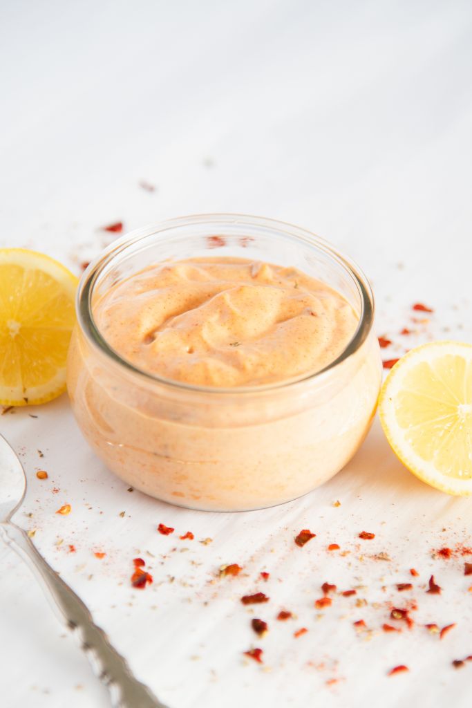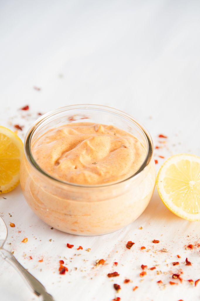 If you want to make this aioli extra spicy, I would recommend doubling the hot sauce and red pepper flakes!