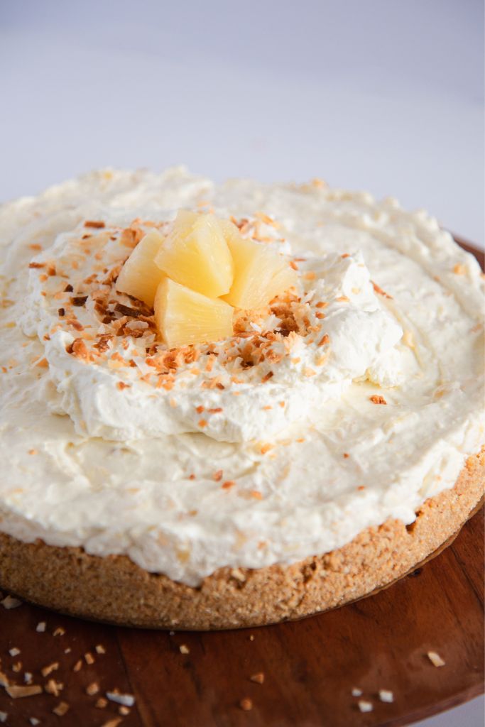 Refreshing pineapple mixed with rich and creamy no-bake cheesecake, over a buttery graham cracker crust, and topped with homemade whipped cream and toasted coconut. Creates a fun and delicious dessert that’s sure to be a hit everywhere it goes!