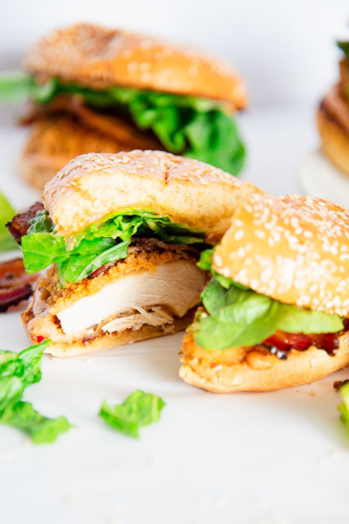 - Cook your chicken. I used my oven-fried chicken recipe for these sandwiches, but you can use any fried chicken recipe you like, or use premade fried chicken patties!