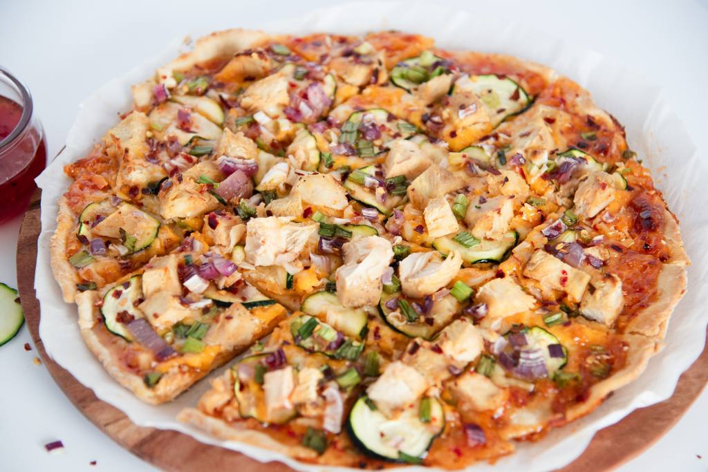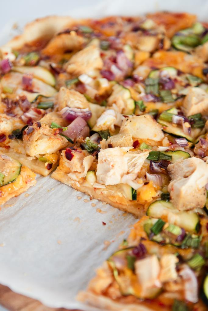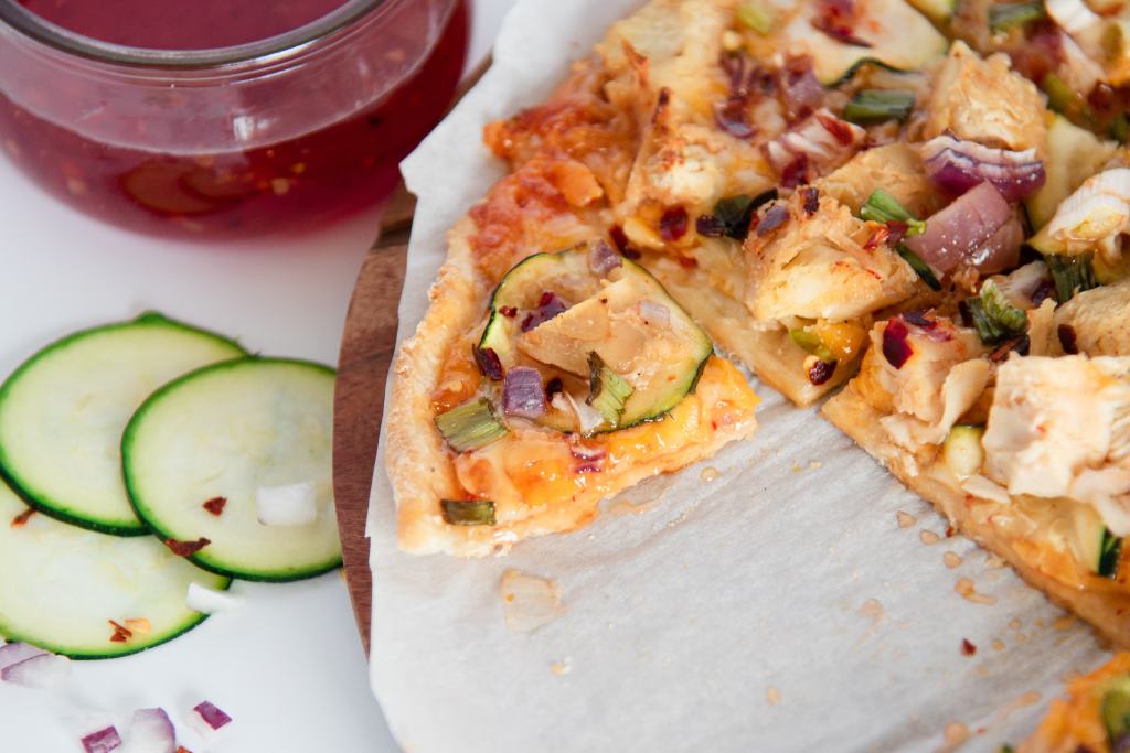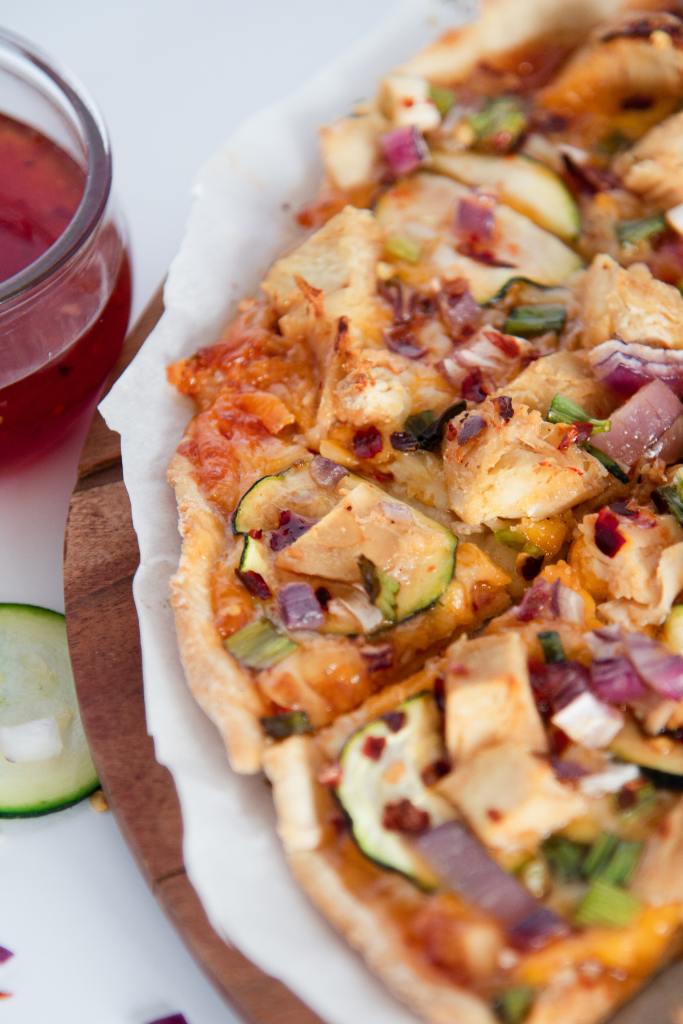 Homemade Thai Pizza with chicken and sweet chili sauce
